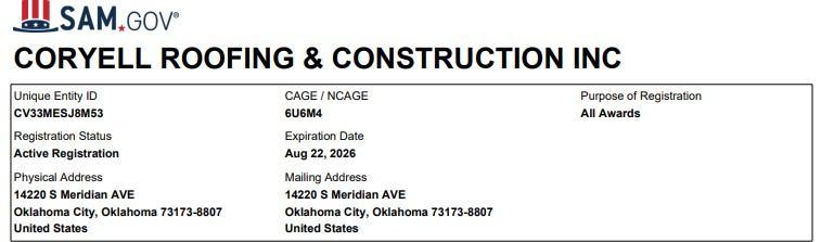 Company Name: Coryell Roofing & Construction, Inc.